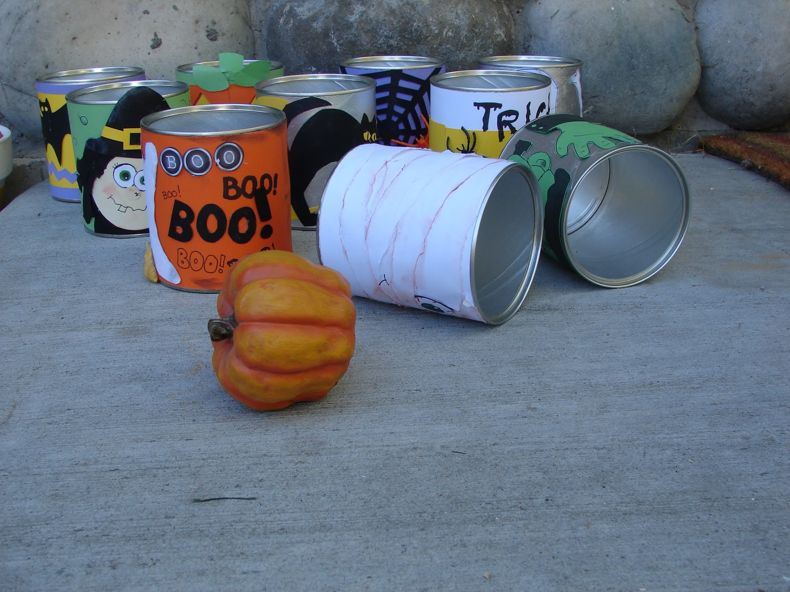 Make individual treat containers or one large pumpkin/bat treat container. You can get the larger sized buckets at the dollar stores for, you guessed it, $1.00